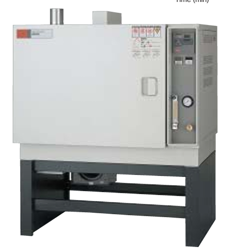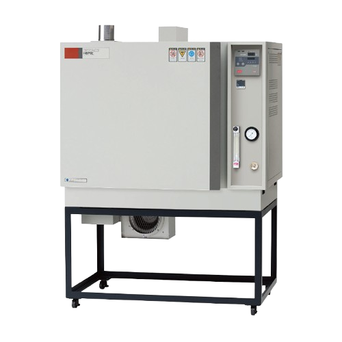 Heat treatment of electronic components with copper or silver electrodes is carried out in an N2 gas atmosphere to prevent oxidation. This incubator was developed specifically for this type of special heat treatment. It achieves improved workability with a high N2 gas replacement rate, reduced N2 gas consumption, and shorter temperature drop times.