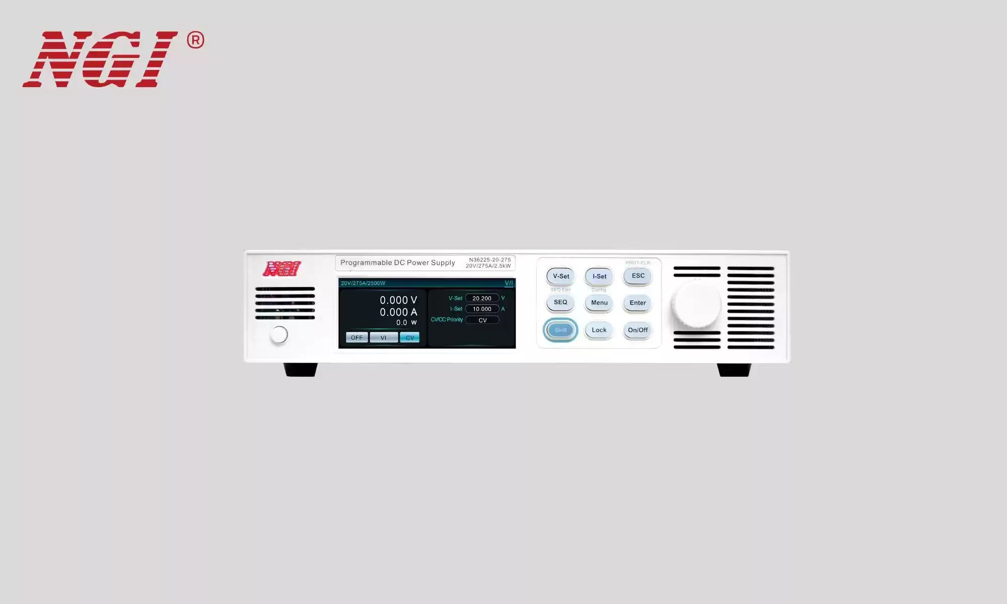 The NGI N36200 Programmable DC Power Supply delivers a high-performance, wide-range solution for demanding laboratory and industrial applications. Engineers utilize this versatile 1U rackmount instrument to achieve maximum power density within a compact 19-inch width chassis. This model integrates 2500W of power while maintaining a slim profile to save valuable space in integrated systems. Consequently, your facility gains a reliable and space-efficient power source that handles a broad spectrum of DUT testing requirements.