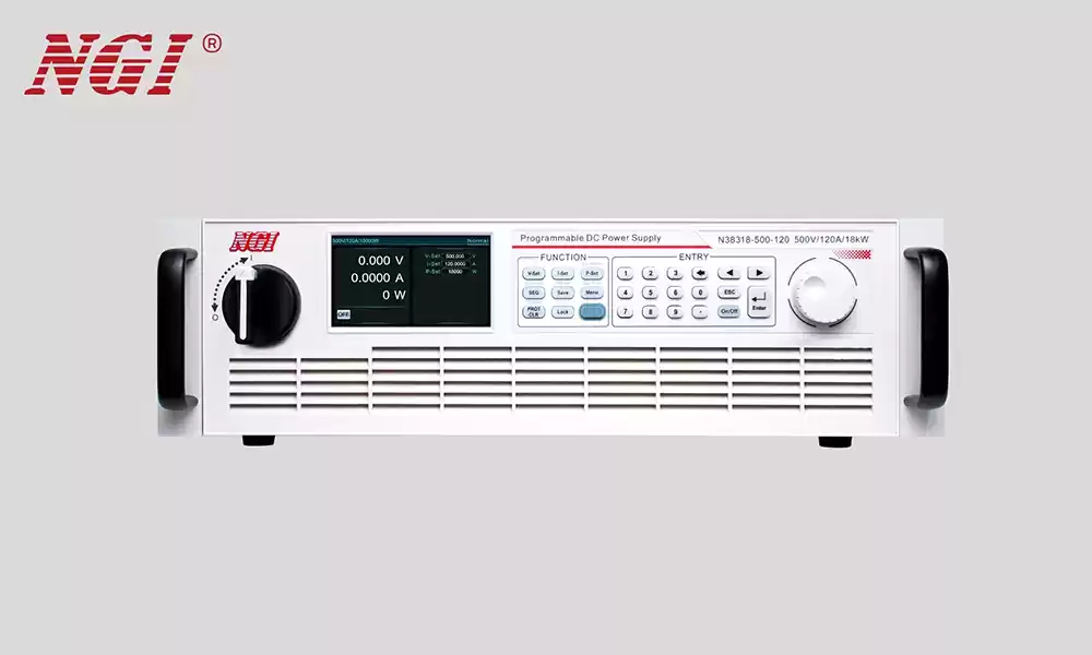 The NGI N38300 Series Programmable DC Power Supply provides a specialized, high-power solution for precision industrial testing and renewable energy R&D. Engineers utilize this wide-range instrument to simulate massive energy demands for electric vehicle (EV) components, solar inverters, and high-capacity battery packs. This specific series addresses the unique requirement of high power density by delivering up to 18kW within a standard 19-inch 3U chassis. Consequently, your facility achieves massive space savings while maintaining the ability to scale power levels up to 1.8MW through master-slave parallel expansion.