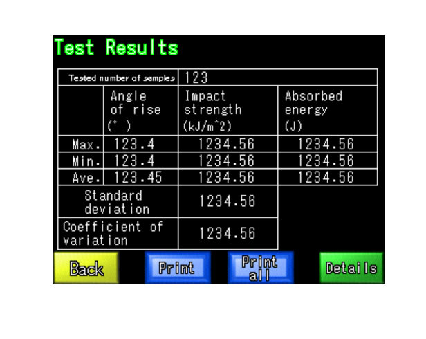 Basic operations are performed using the touchscreen. After the test, the impact value is automatically calculated based on the hammer lift-up angle.
