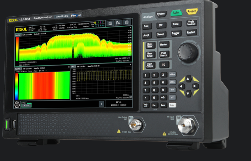 The RSA6000 Series Real-Time Spectrum Analyzer is equipped with real-time analysis (RTSA) and swept analysis (GPSA) functions, and offers optional vector signal analysis application software (VSA), analog signal analysis application software (ADM), and EMI measurement application software (EMI), boasting excellent performance and specifications.